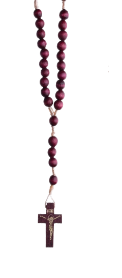 RÓŻANIEC DREWNIANY NA SZNURKU BORDOWY WIŚNIOWY